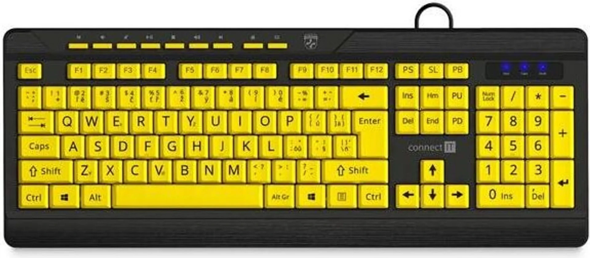 CONTRAST klávesnica s veľkým fontom, USB, CZ + SK verzia, ŽLTÁ/ČIERNA