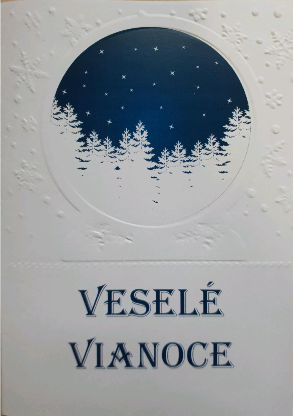 Vianočný pozdrav s otváraním v kombinácii tlače a ručnej výroby. Možnosť dotlačiť na vnútornú stranu vlastný text. Súčasťou je obálka.