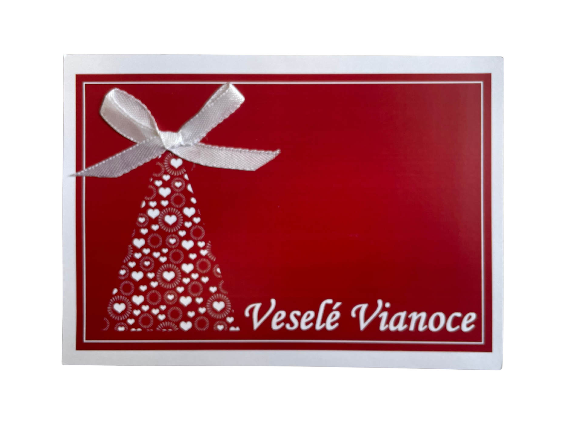 Vianočný pozdrav s otváraním v kombinácii tlače a ručnej výroby. Možnosť dotlačiť na vnútornú stranu vlastný text. Súčasťou je obálka.