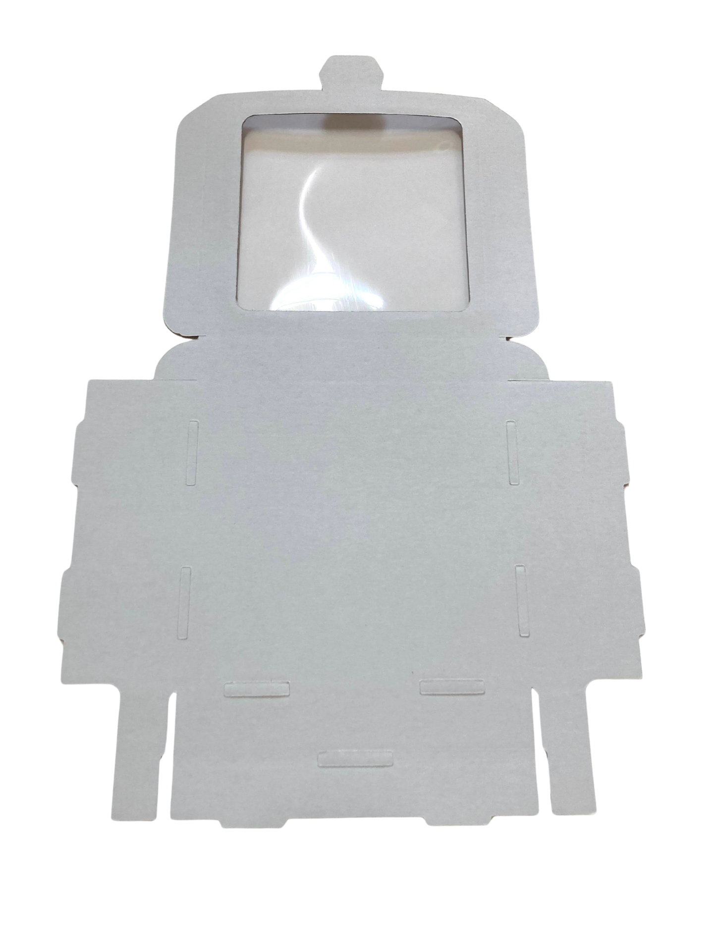Krabička z vlnitej 3-vrstvovej lepenky vyrábaná strojovo. Okienko je podlepené transparentnou (priehľadnou) fóliou. Pevnosť podporuje zasúvací klop, vďaka ktorému je krabička pevne uzatvorená. Je dodávaná v rozloženom stave.